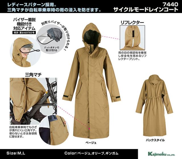 レインコート 自転車用 レディース おしゃれ ママ 送迎 レインウェア ロング丈 かわいい 防水 軽い 通勤 通学 カッパ 梅雨 雨具 サイクルモード レインスーツ 7440 カジメイク kajimeiku(代引不可)【送料無料】