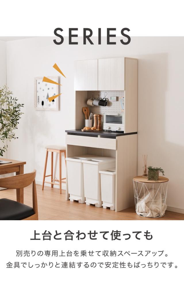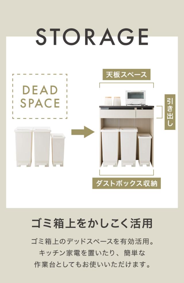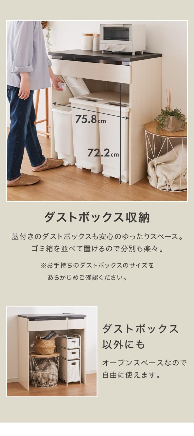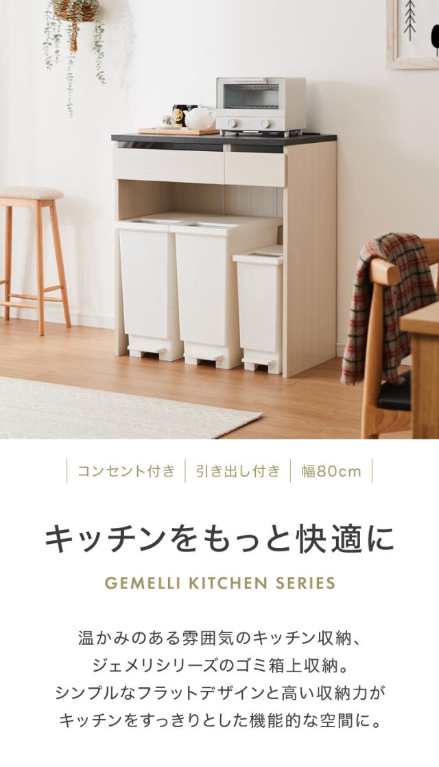 ジェメリ ゴミ箱上収納台 ホワイトウッド 収納 ダストBOX上 収納台 幅80 奥行45 調理家電 コンセント付 カトラリー キッチン小物 収納 引出し キッチンワゴン 組立品(代引不可)【送料無料】