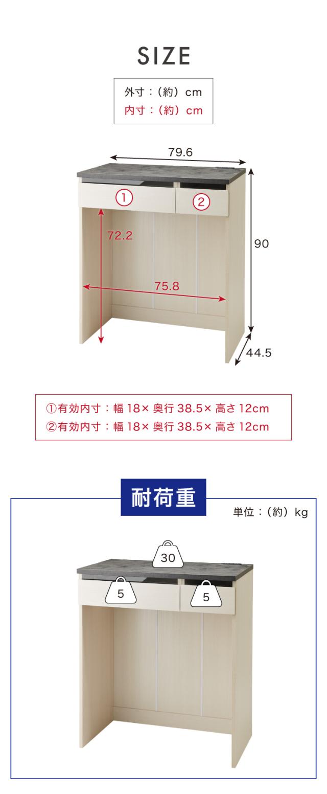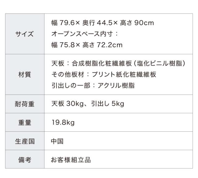 製品サイズ(約):幅79.6×奥行44.5×高さ90cm