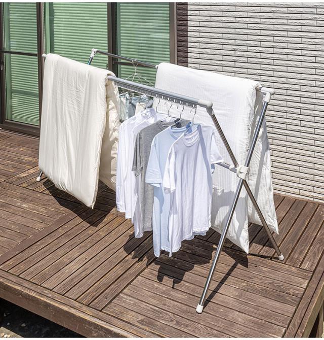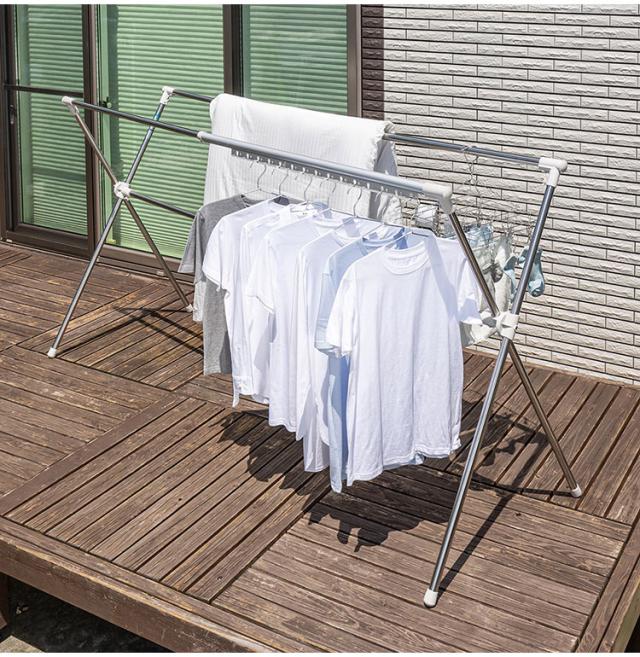 屋外、室内どちらでもシンプルに使えるX型ふとん干しです。