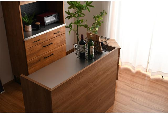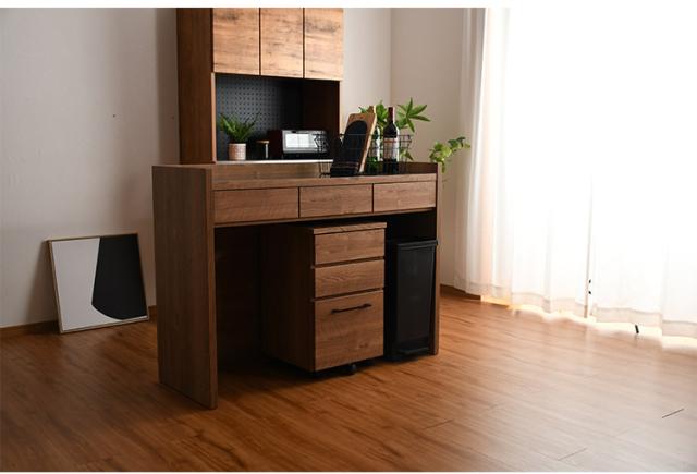 間仕切りカウンター 幅122cm 引き出し付き 収納 背面化粧仕立て フルスライドレール付き 完成品 すき間収納 ラック リビング収納 玄関収納 キッチン収納(代引不可)【送料無料】