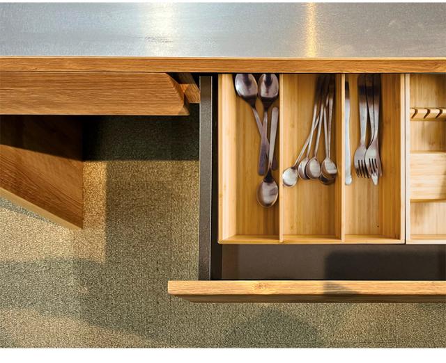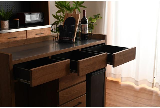 ・引出はフルスライドレール付きで奥のものまで取り出しやすく開閉らくらく。