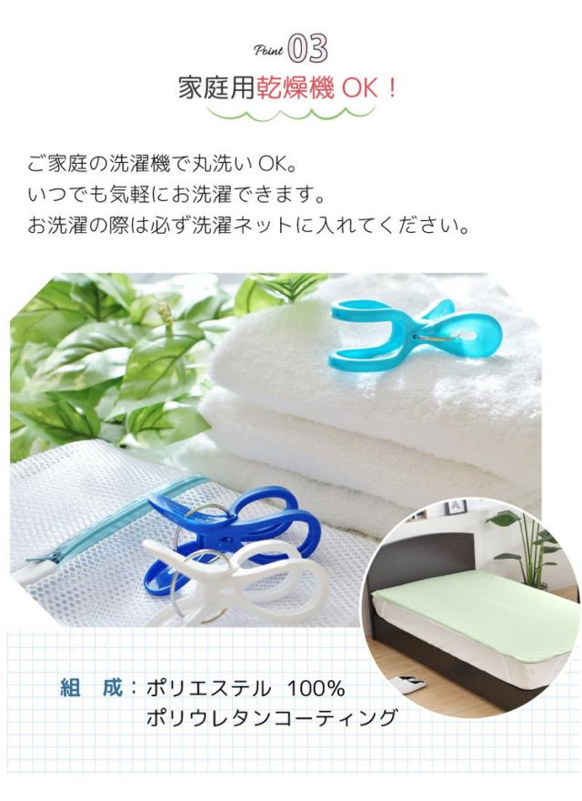 「布団と接する内面はポリウレタンコーティングによって水分を通さず、中の布団を濡らしません。」