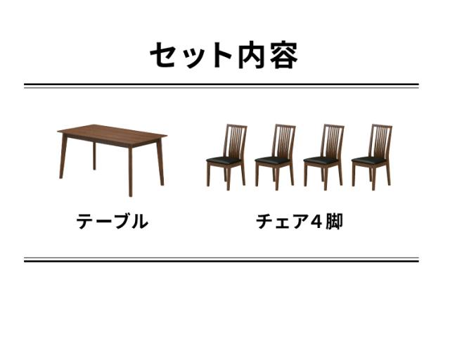 ダイニングセット 4人掛け ダイニング5点セット 幅135 ウォールナット オーク 天然木 食卓テーブル おしゃれ 北欧 食卓テーブル ハイバックチェア 座面PVC(代引不可)【送料無料】