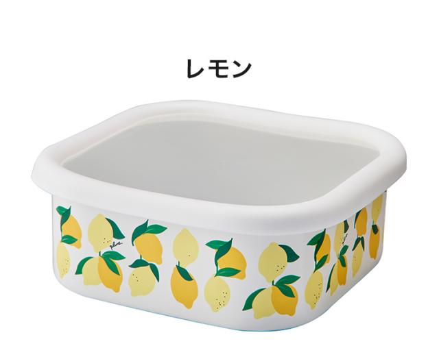 材質/本体:ほうろう用鋼板、蓋:ポリプロピレン・熱可塑性エラストマー、サイズ(重量・容量)/約163×163×62mm(約340g・950ml)、日本製(本商品は下地は中国国内で、絵付けから仕上げまでの完成工程を日本国内)
