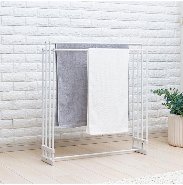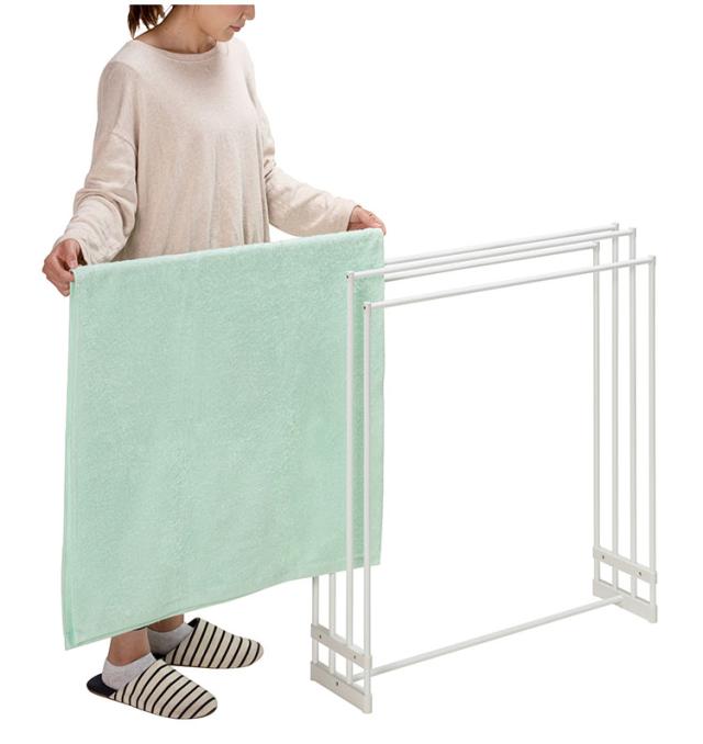 幅74cmまでの大判のバスタオルが4枚干せます。(フェイスタオルは8枚まで)