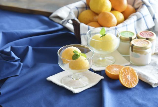 常温保管可能で食べたい時に凍らせて食べるソルベ。ゲル化剤やペクチンなど食品添加物を使用せず、寒天を使用することで、シャーベットのように爽やかな清涼感があり、なめらかな食感でお召し上がり頂けます。