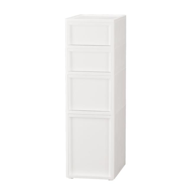 ・オールホワイトの隙間収納チェスト。中身が透けないのでスッキリして見えます。