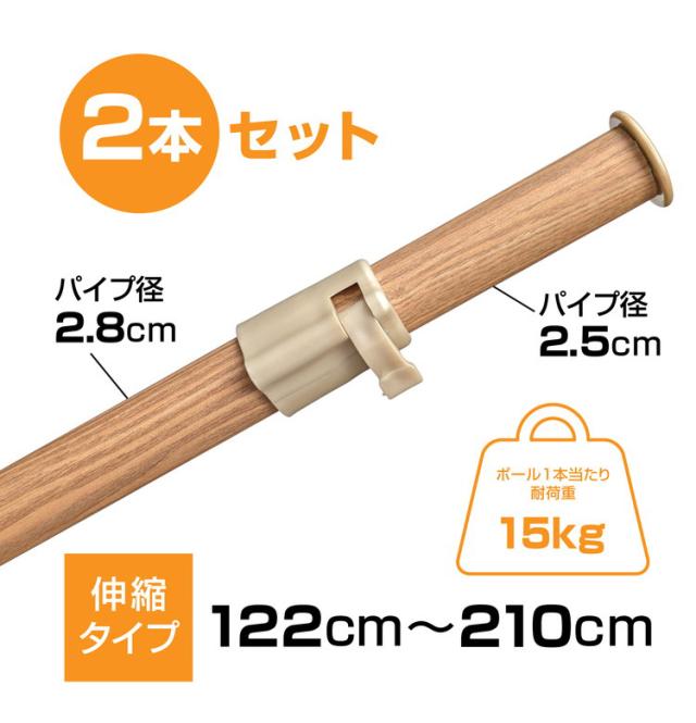 物干し竿 2本セット 室内干し 突っ張り棒 室内 物干し竿 ハンガー掛け おしゃれ 木目調 洗濯物干し 伸縮棒 突っ張り棒 つっぱり 竿 室外 ふとん干し 突っ張りポールハンガー シンプル スリム(代引不可)【送料無料】