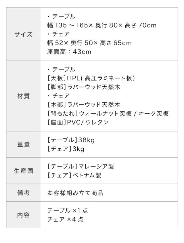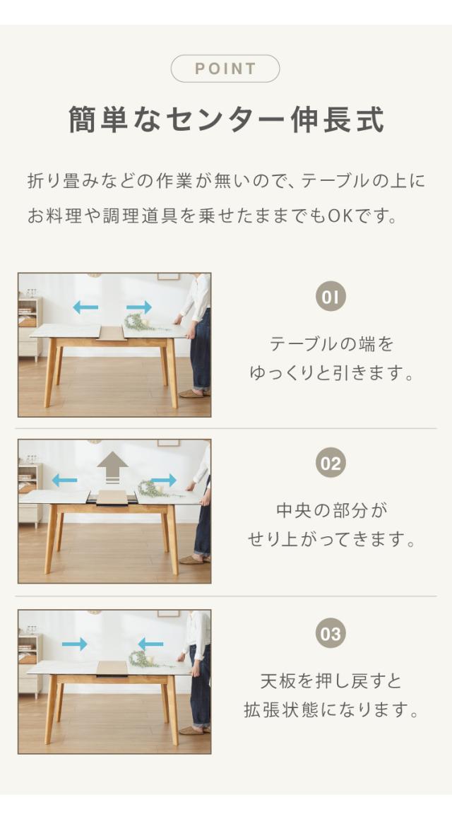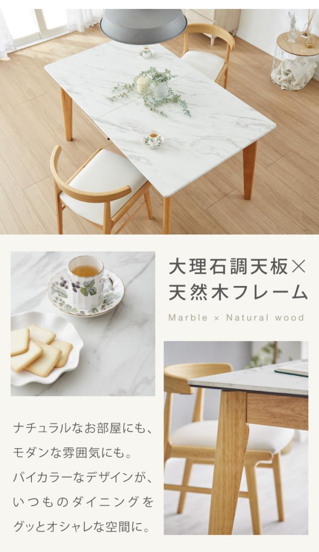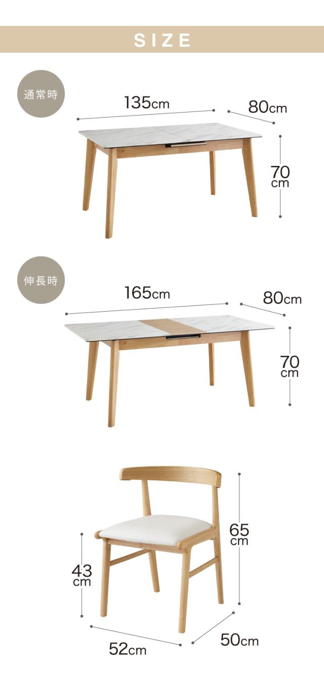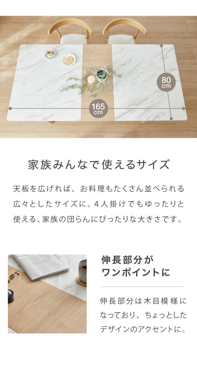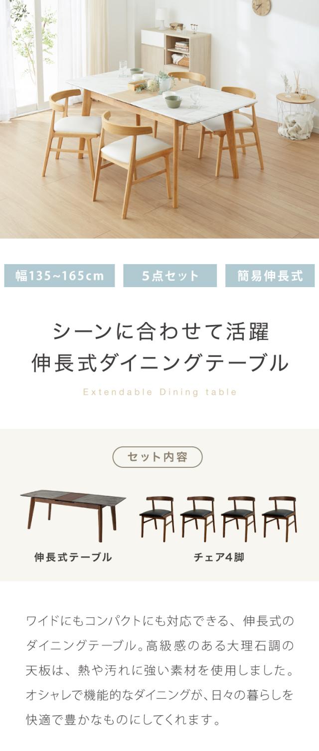 大理石柄ダイニング 5点セット 伸長式 幅135〜165cm