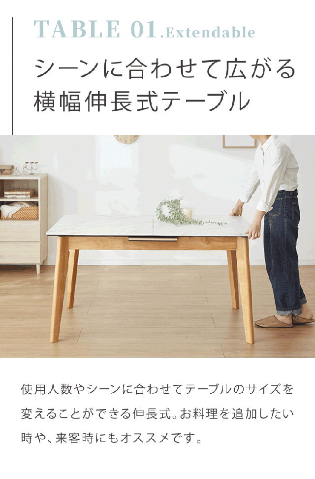 大理石柄テーブル 伸長式 幅135〜165cm