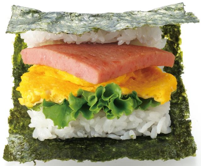 ギュッとポンお弁当作り。海苔の上に枠パーツを置いてごはんをつめ、押すだけ。枠をはずしてたためばできあがり。ダブルエンボス加工でごはんがくっつかない具たっぷり、スピードおにぎりサンド!