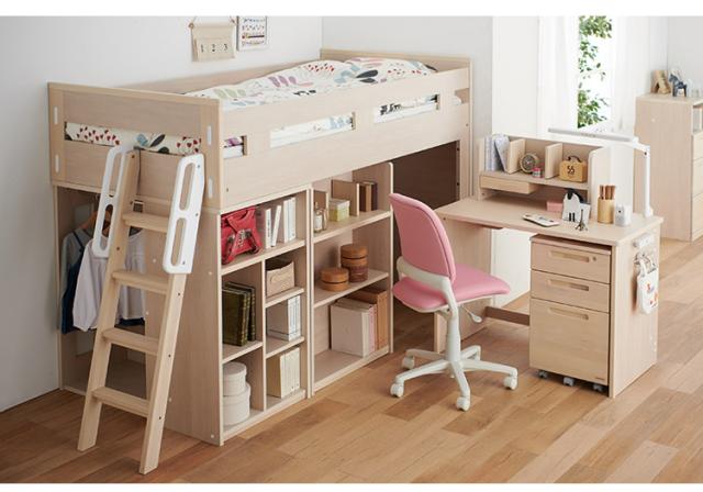 スペースを有効活用できるミドルベッドシリーズ。お好きなアイテムを組み合わせて収納力をさらにアップできます。