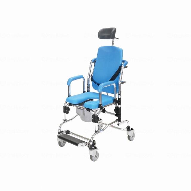 ○リクライニング(6段階)でき、かつヘッドレスト付なので洗髪に便利です。U字型の座面で、陰部洗浄にも便利です。
