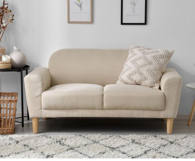 ・丸みを帯びたフォルムがかわいい、2人掛けソファです。