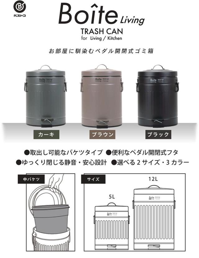 ベストコ ゴミ箱 ふた付き 12L ペダル式 静音設計 丸型 ブラック NQ-0196 Boite トラッシュカン【送料無料】