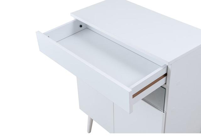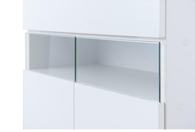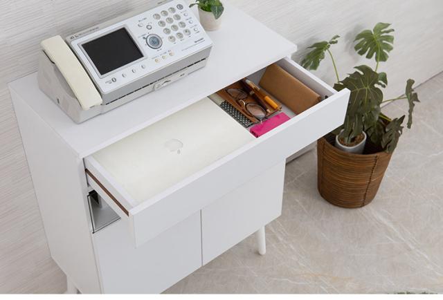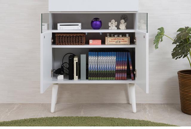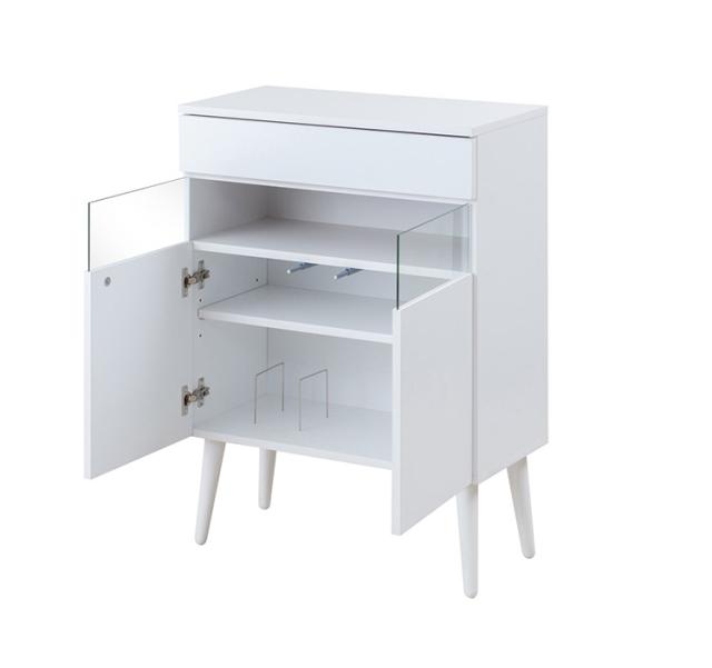明るいホワイトカラーをベースに透明感あるクリアガラスやスキニーな美脚効果で軽やかでスタイリッシュなデザインに仕上げたFAX台兼用コンパクトキャビネット。スリムな約30cm幅はデッドスペースや玄関などにちょいっと置けるおしゃれなキャビネット。扉内にはごちゃつきがちな配線や野暮ったいルーター機器などを隠してしまえる実力派。ガラス部には雑貨などをディスプレイしてお好みの雰囲気にアレンジ。ワイドな約60cm幅はリビングなどスピーカー台やFAX台としてコンパクトでお洒落に演出。