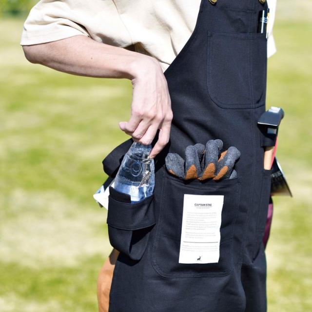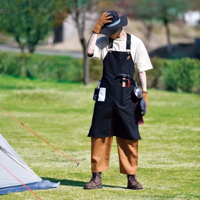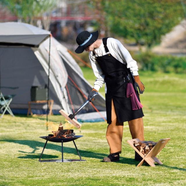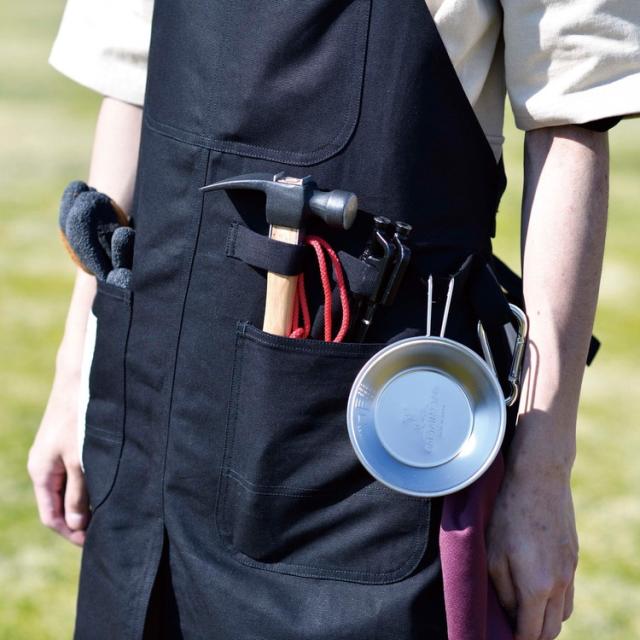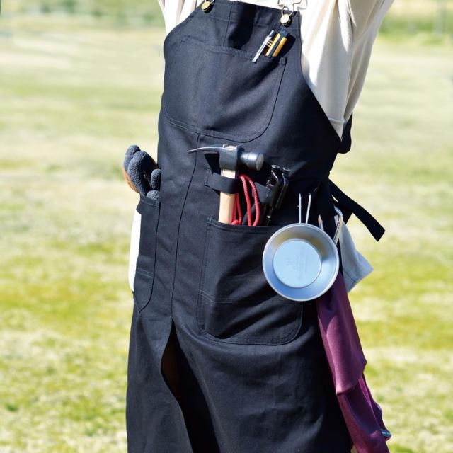 焚き火や料理に適した、難燃生地を使用したエプロン。