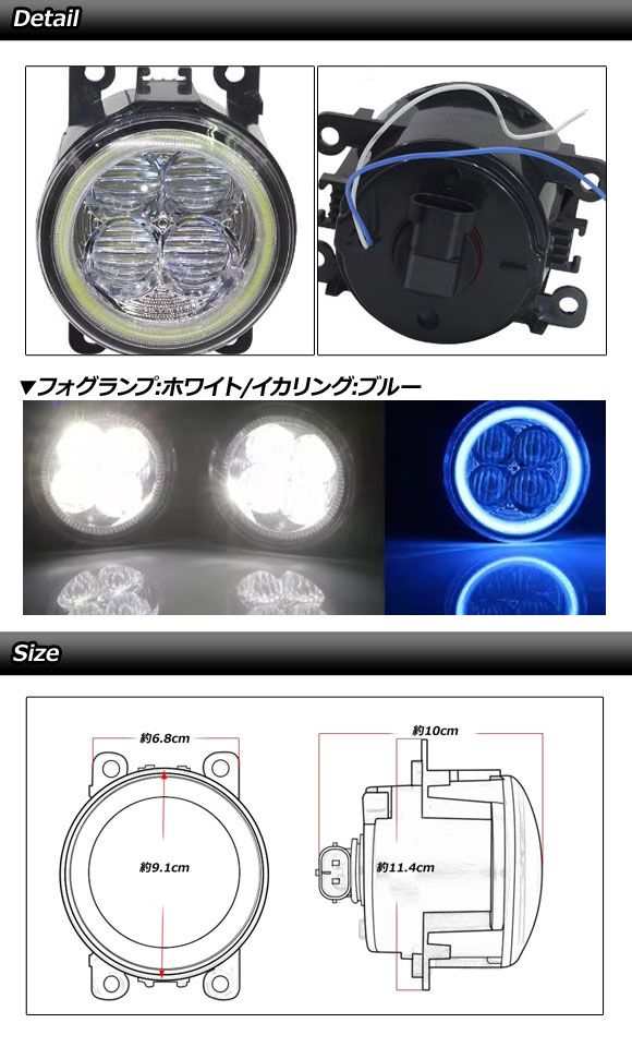 LEDフォグランプ フィアット 500 312 2012年04月〜2015年11月 ホワイト×ブルー 入数:1セット(2個) AP-LB378