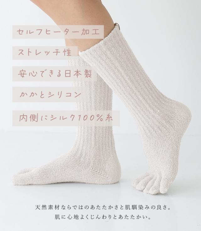 『ロング丈一重裏シルク5本指ソックス』※メール便可※【5】靴下 ソックス ルームソックス 5本指 5本指靴下 冷えとり靴下 冷え対策 冷えとり 保湿 放湿 保温 シルク糸 レディース あったか 防寒 冷え性 あったかソックス ぽかぽか 厚手 かかとケア 日本製◇