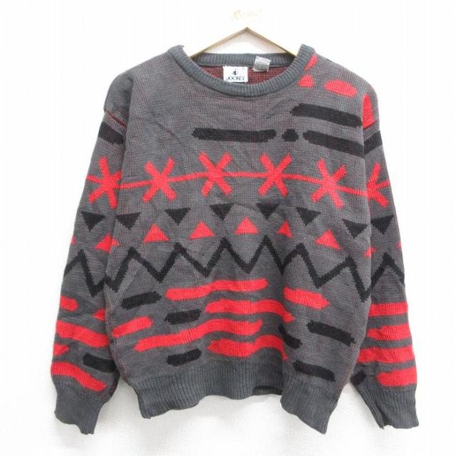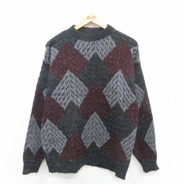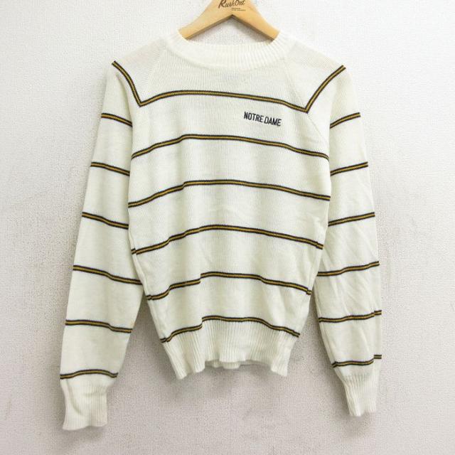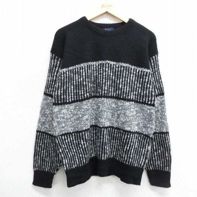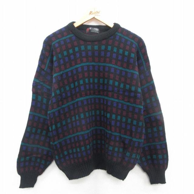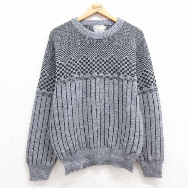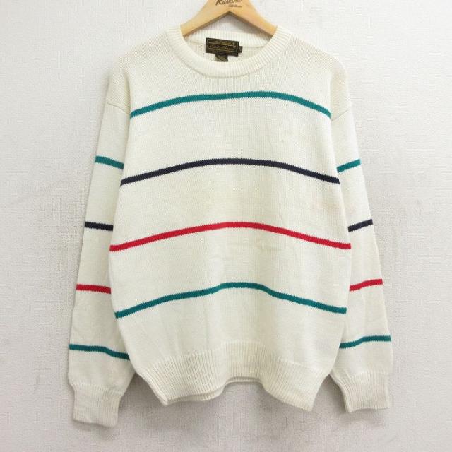 古着 長袖 セーター メンズ 90年代 90s クルーネック 紫他 パープル ボーダー Mサイズ 中古 ニット トップス 中古 古着