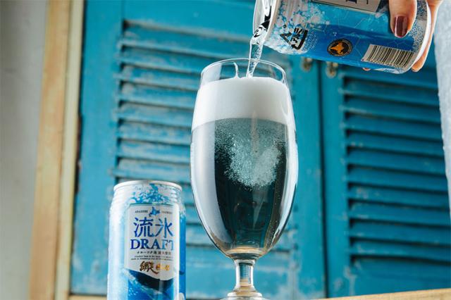 網走の冬の風物詩「流氷」を仕込水に使用。オホーツク海をイメージさせる深い青色に仕上げています。苦味を抑えたスッキリとした飲み口。
