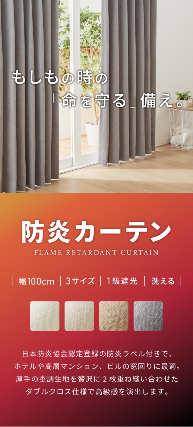 FLAME RETARDANT ドレープカーテン 幅100cm ダブルクロス・トップクラス 1級遮光 防炎加工 3サイズ 杢調生地 ダブルクロス仕様 遮光99.99% 節電 形状記憶加工 洗濯可 ホテル向け(代引不可)【送料無料】
