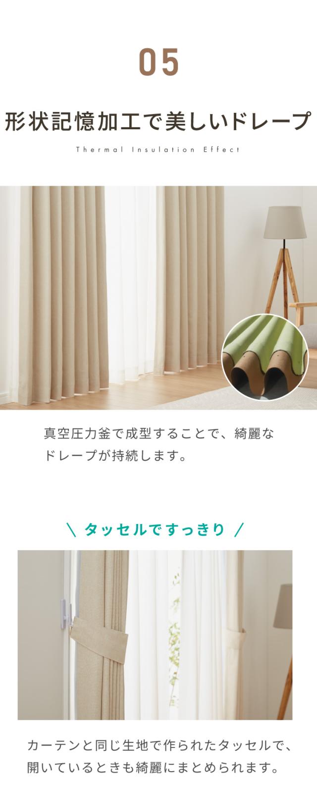 形状記憶加工付きで長い期間綺麗なドレープを維持できます。