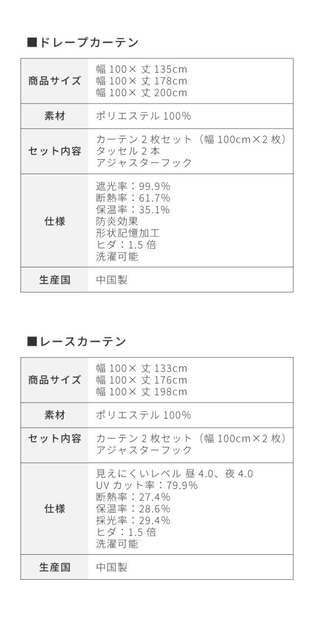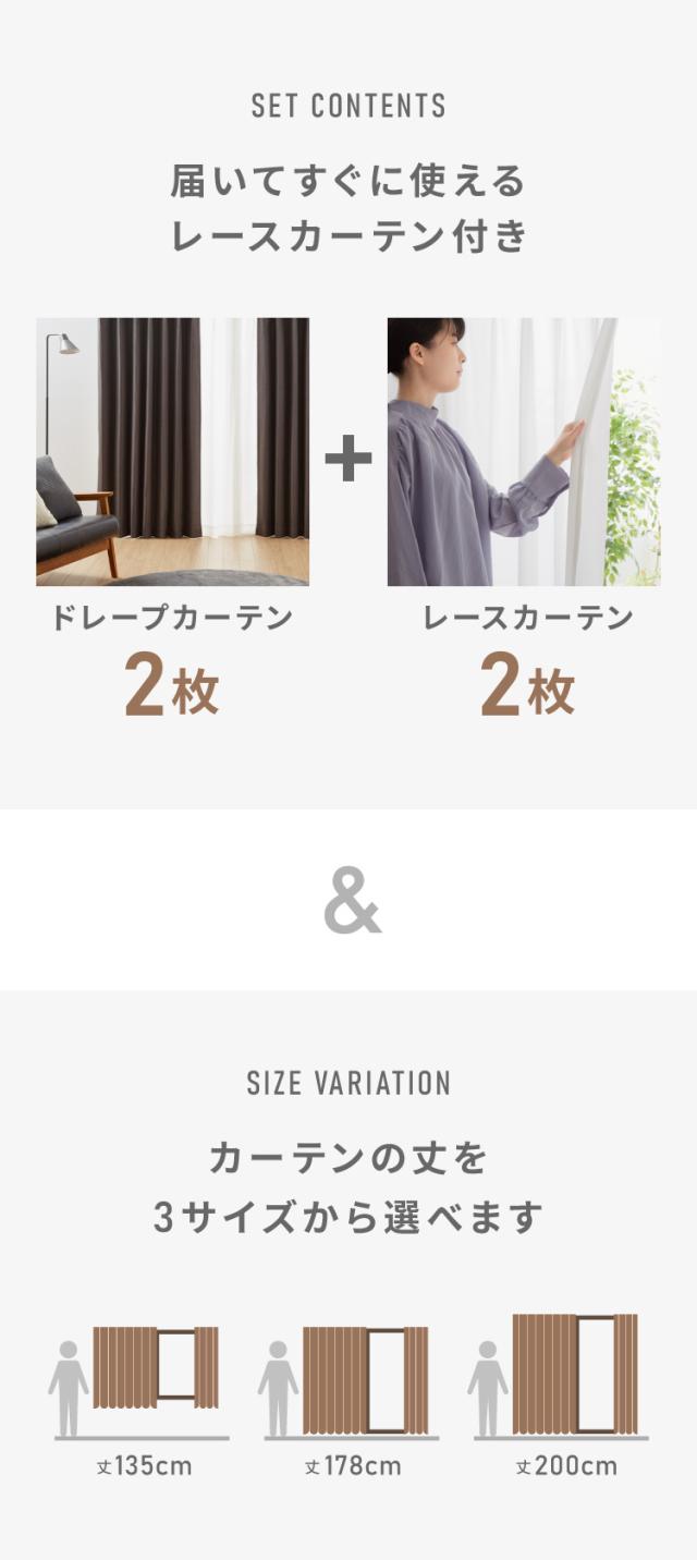 ミドルサンシャット 2枚セット | ミドルサンシャット 4枚セット | レースカーテン 2枚セット | |