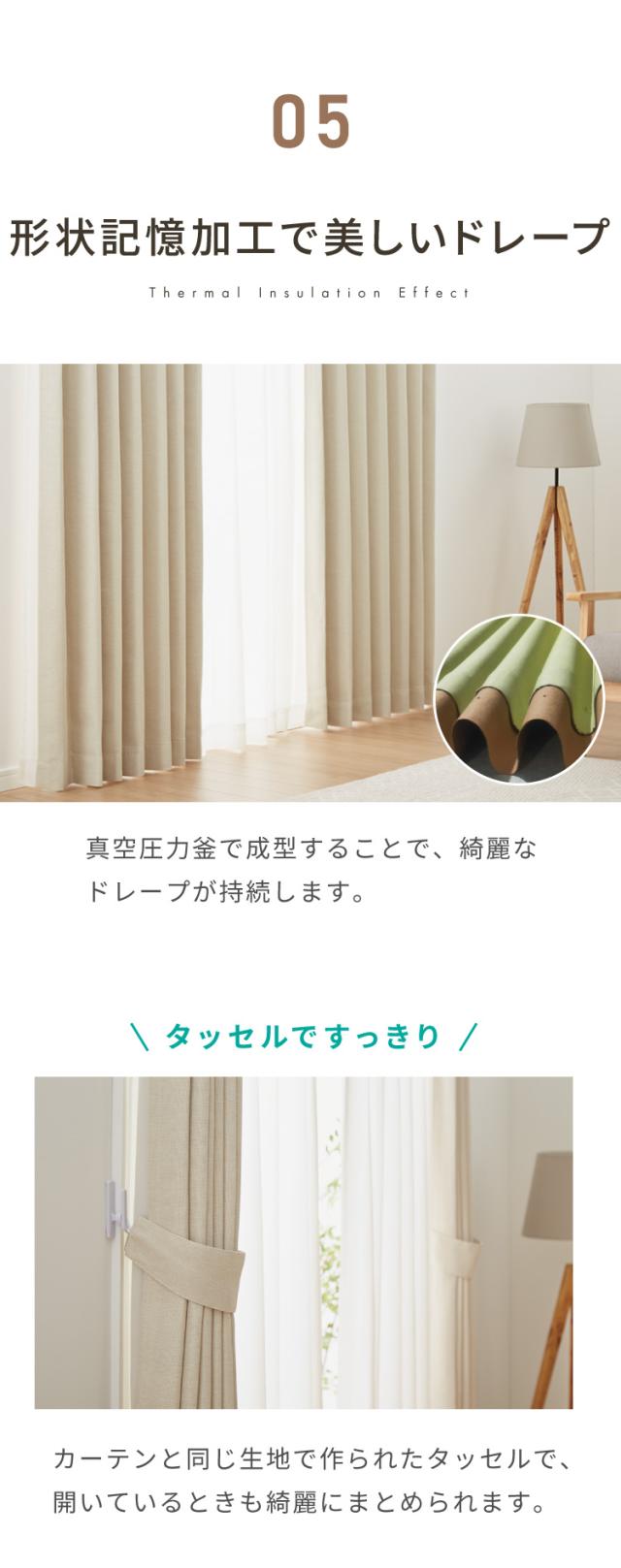 形状記憶加工付きで長い期間綺麗なドレープを維持できます。