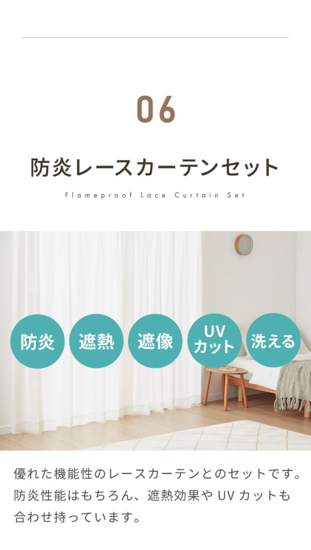 FLAME RETARDANTシリーズの防炎ドレープカーテンとレースカーテンの4枚セットです。
