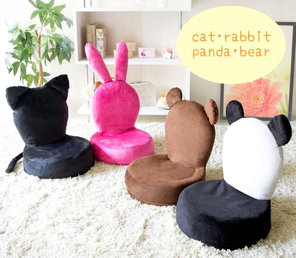 アニマル座椅子 ネコ、くま、パンダ、うさぎのカタチをした、コンパクトアニマル座椅子【送料無料】