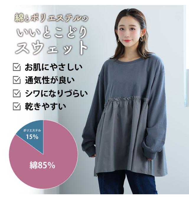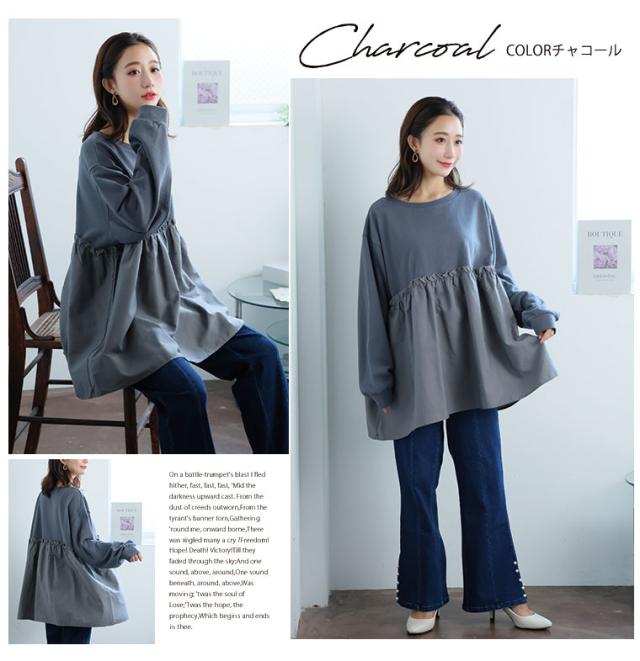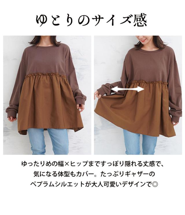 新作 大きいサイズ レディース トップス | 【裏起毛の服苦手さんにおススメ】 ペプラム ギャザー スウェット [502004] LL 3L 4L 5L 6L 7L 8L