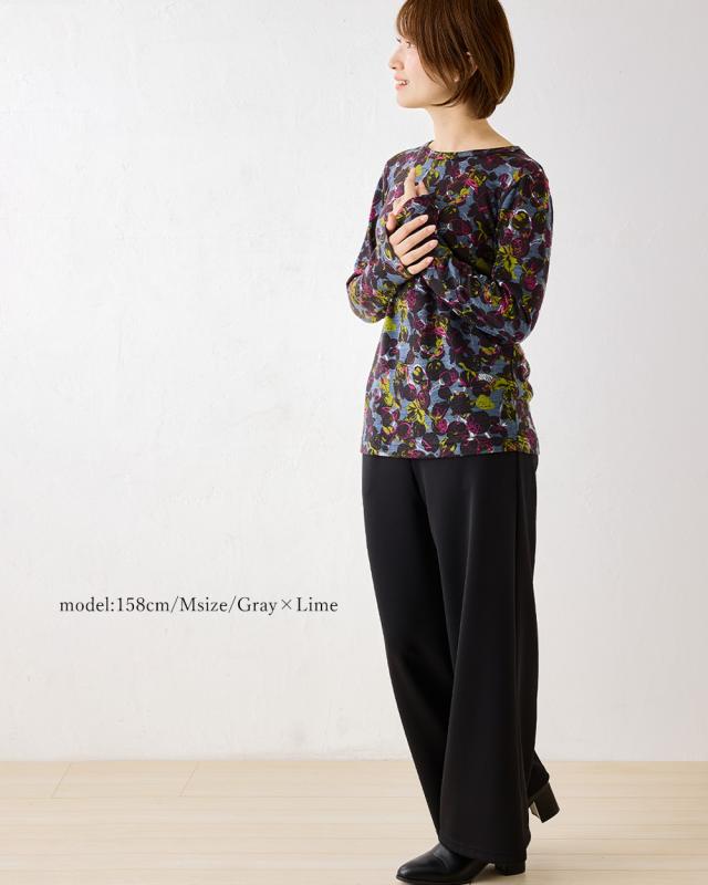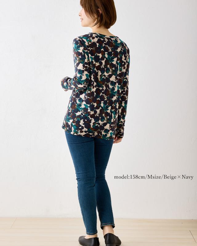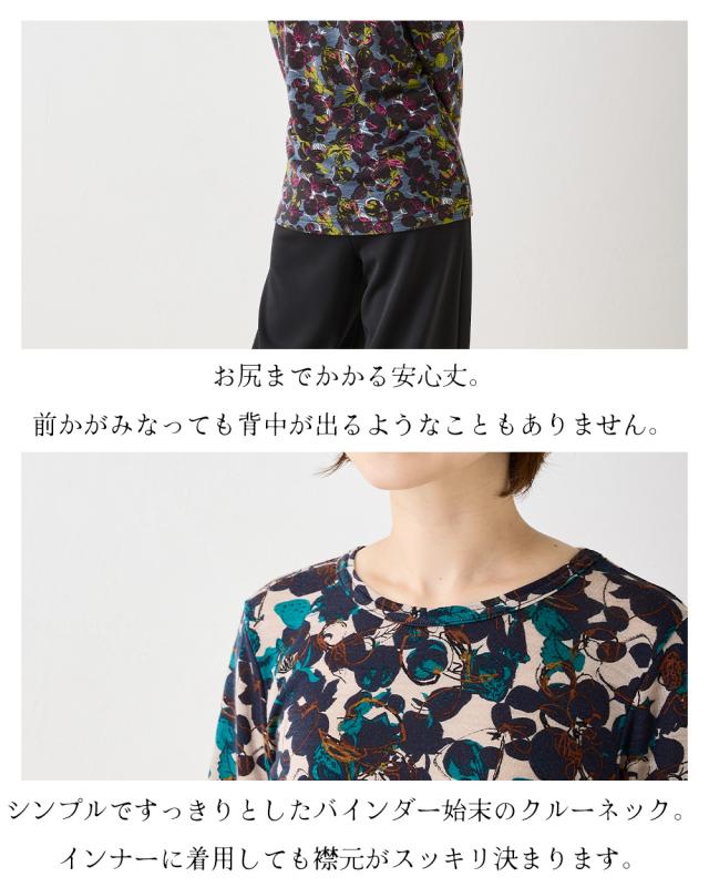 秋冬アイテム ocia nli jf クルーネック インナー 洗えるウール 登山 服装 登山服 プリント 花柄