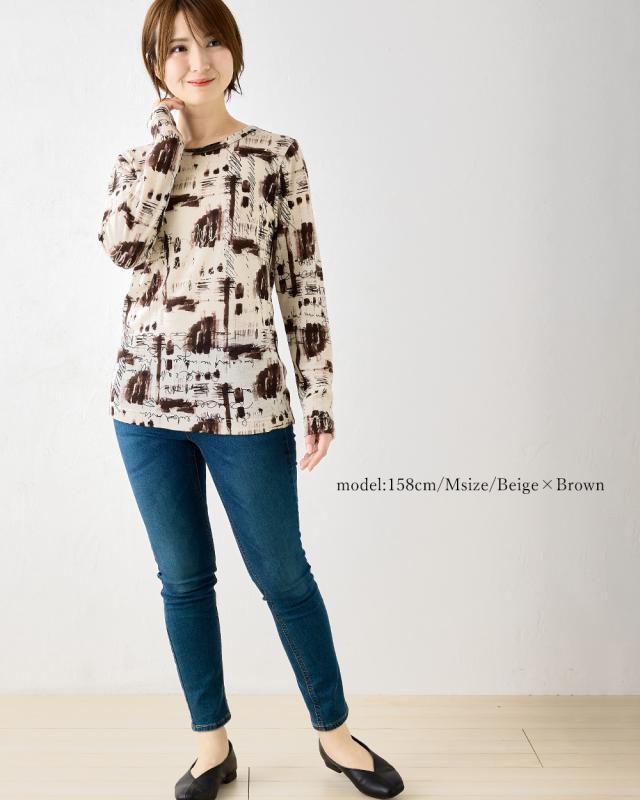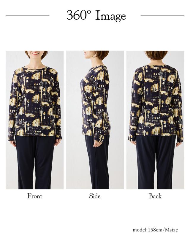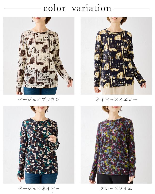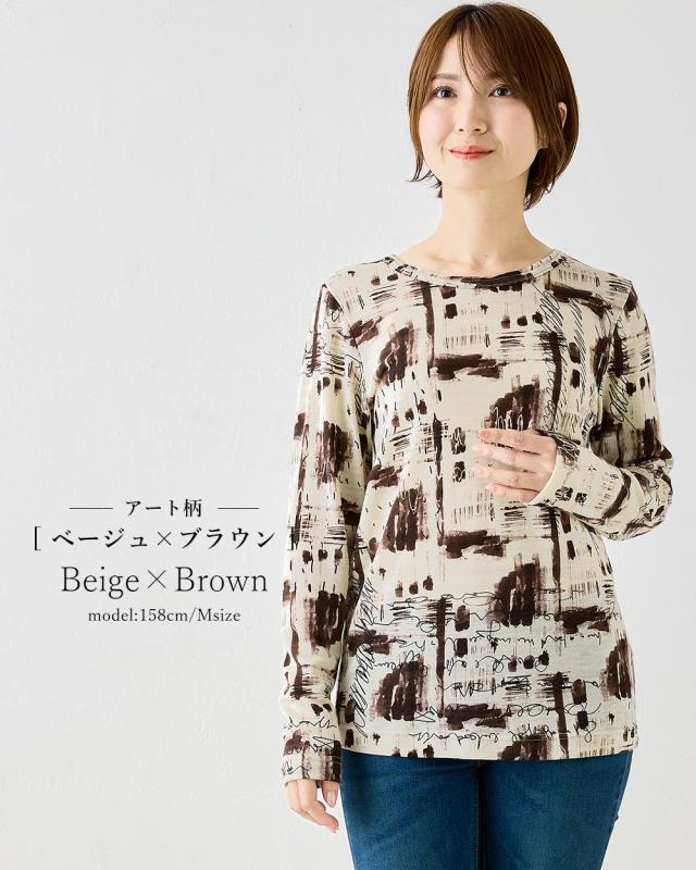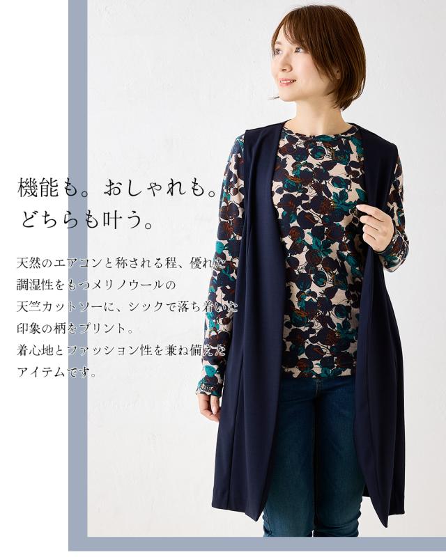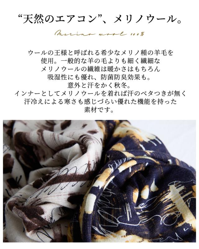 メリノウール クルーネック Tシャル 長袖 プリント レディース 日本製 インナー ウール100% ウォッシャブルウール 登山 クルーネック カットソー 長袖tシャツ アンダーウェア カットソー ベースレイヤー 夏 秋 冬 30代 40代 50代 60代 洗えるウール 丸襟
