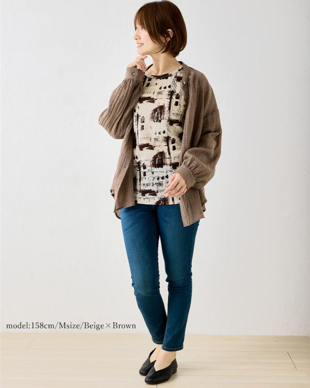 上質なメリノウールを使用し、軽くて柔らかな肌触りを実現したプリントカットソー。デザインと機能を兼ね備えた一枚で、日常のスタイリングに洗練された印象をプラス