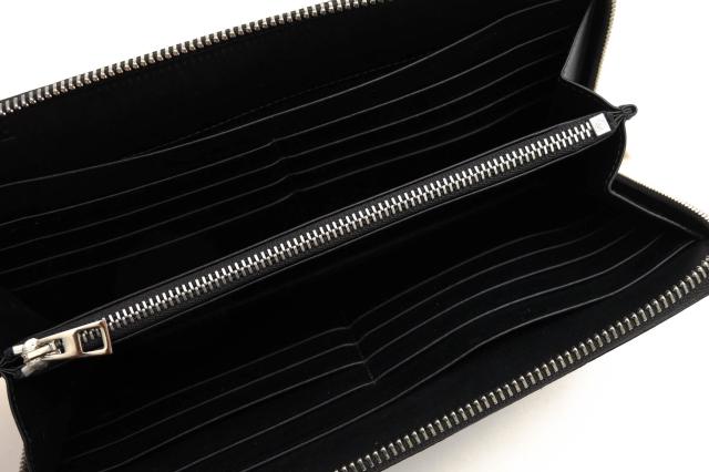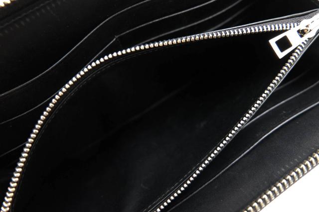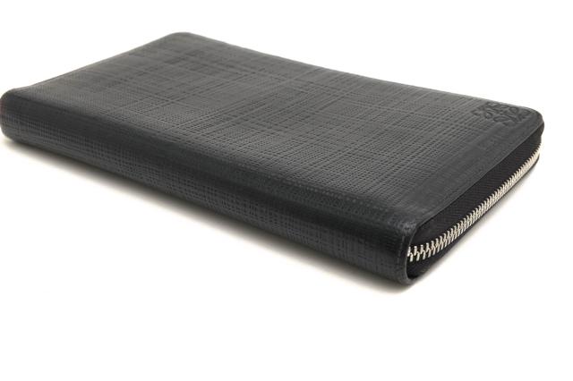 上質なカーフに、リネンを思わせる加工が施された「リネン」シリーズのモデル。網目模様の型押しが施されており、視覚的なおもしろさや手触りのよさに加えて、汚れや傷みが目立ちにくくなる効果があります。フロントには、ロエベのアナグラムがエンボス加工がデザインされています。三辺をファスナーで囲んだラウンドファスナー型なので、お札やカードポケット、小銭入れの収納スペースが充実しており、ファスナーを開いたときに視認性に優れているのも特徴です。またファスナーで守られているので、大切なお金やカード類を落としてしまうのを防止し、安全性の高いデザインです。