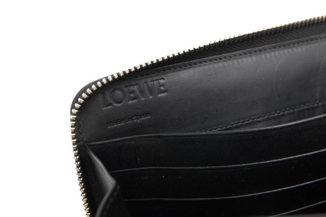 ○ロエベ LOEWE 牛革 カーフ 長財布 C525T12X01 LINEN ZIP AROUND WALLET リネン アナグラム型押し 小銭入れあり ラウンドジップ 中古