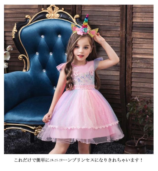 キッズ ハロウィン コスプレ ユニコーン コスチューム ワンピース 女の子 精霊 ハロウィン衣装 カチューシャ付き 2点セット チュチュ ベビー 赤ちゃん コスチューム 変装 仮装 子ども パーティー 演出服 ステージ イベント 送料無料