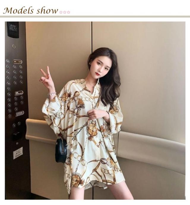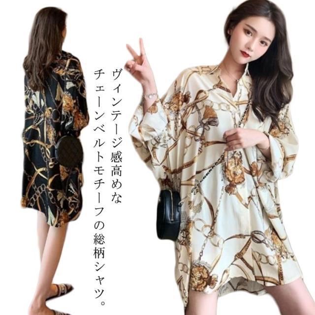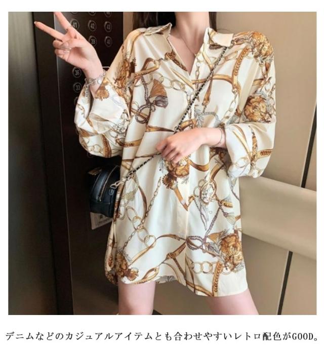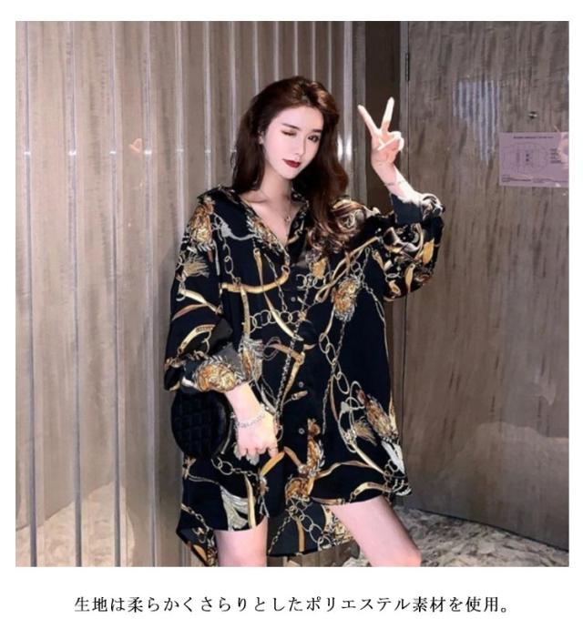 柄シャツ シャツ レディース 長袖 ブラウス チェーンベルト柄 スカーフ柄 長袖 おしゃれ トップス オーバーサイズ 体型カバー ゆったり 大きいサイズ 春 夏 秋 ダンス 衣装 ヒップホップ コスチューム 韓国ファッション 個性的