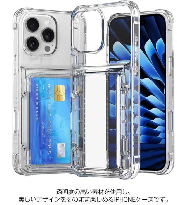 iphone16 ケース クリア 透明 ポケット付き 背面収納 カード収納 iPhone16pro ケース iPhone16Plus iPhone16 promax ケース クリアケース 耐衝撃 スマホケース 韓国 アイフォン カバー iphone15 14 13 12 ケース おしゃれ かわいい 送料無料