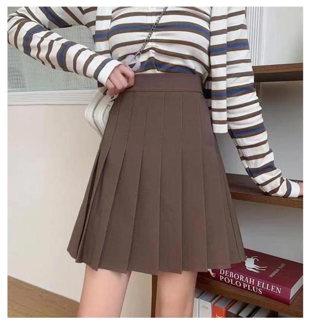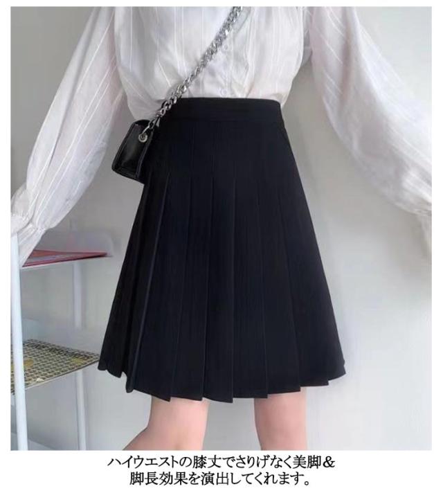 プリーツスカート 制服 スカート ロング 送料無料 膝丈 スクールスカート 学生服 女の子 プリーツ ハイウエストスカート Aライン スカート シンプル 無地 裏地付き チラ見せ防止 安心 大きサイズ 茶色 ブラック グレー ホワイト 白 コーヒー 送料無料