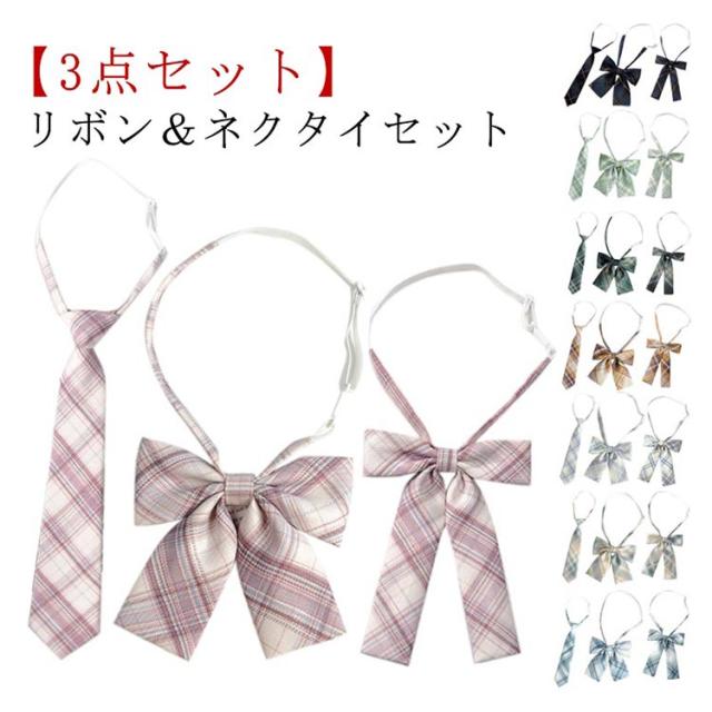 【3点セット】リボン&ネクタイセット 制服 リボン ネクタイ 学生服 ワンタッチネクタイ ワンタッチ ネクタイ 制服リボン 制服りぼん スクールリボン クイックネクタイ 学生 りぼん 中学生 高校生 Jk JC コスプレ 女子高生 簡単 リボンタイ かわいい 学園祭