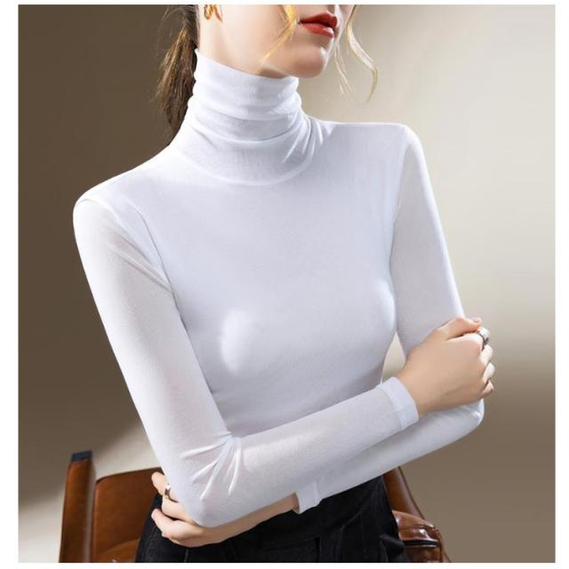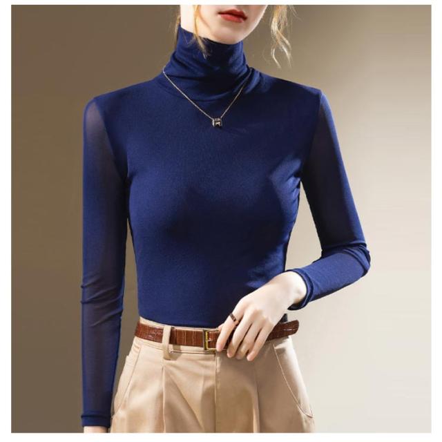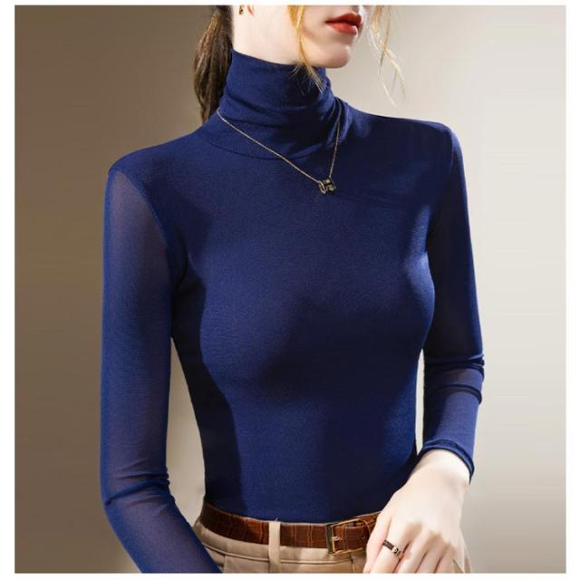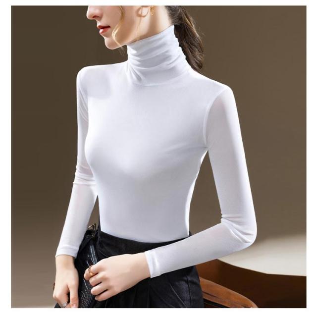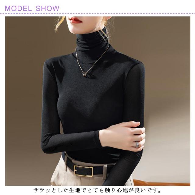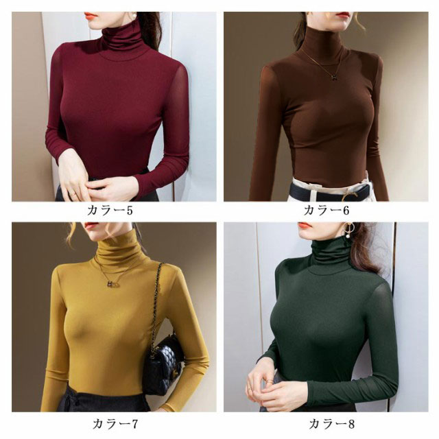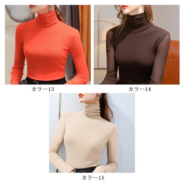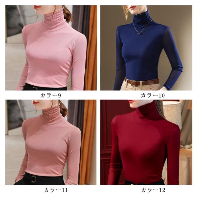 全15色 タートルネック レディース ハイネック tシャツ 長袖 薄手 インナー カットソー 長袖Tシャツ 社交ダンス 衣装 レッスン着 練習着 ストレッチ メッシュ素材 S M L XL 2XL 3XL 4XL