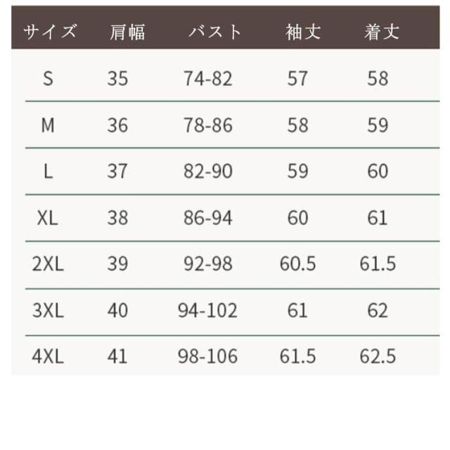 | サイズ | S M L XL 2XL 3XL 4XL |