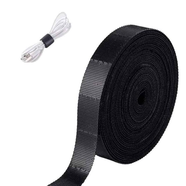 Neyiem ケーブルバンド マジック 結束バンド 黒 幅10mm×長さ10M ケーブルバンド まとめる ストラップ 結束バンド ケーブルバンド 配線 コード 整理 固定 収納用 強力 耐熱 繰り返し使用可能 両面テープ用 ブラック, (フリーカットタイプ