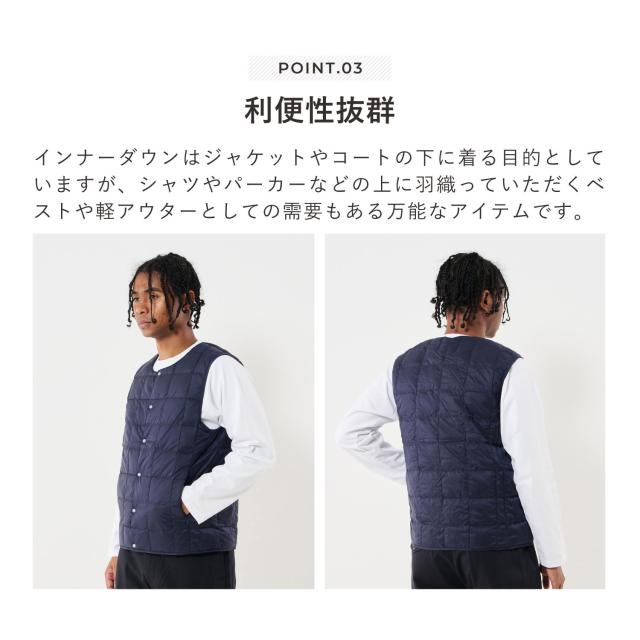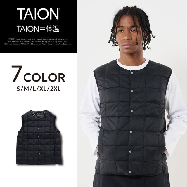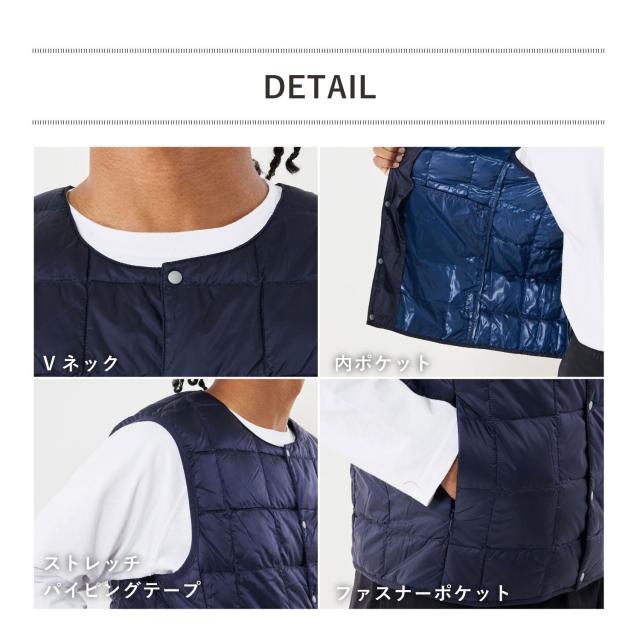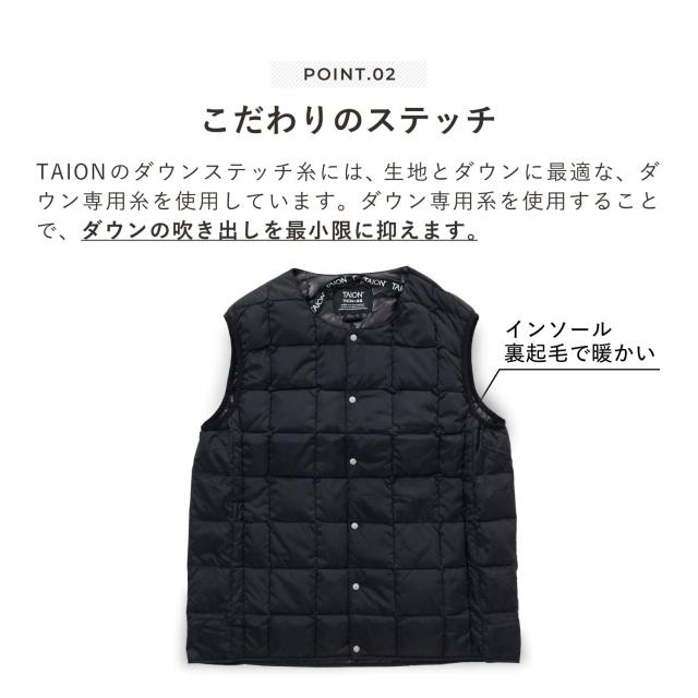 TAION タイオン インナーダウン ベスト ジレ アウター ベーシック クルーネックボタン メンズ TAION-004 冬新作
