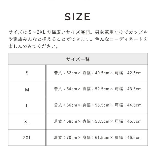 2XL:着丈:70cm×身幅:61.5cm×肩幅:46.5cm