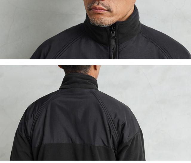 単体での着用も想定された作りになっており、生地は肌触りがよく保温性の高いマイクロフリース生地を使用。