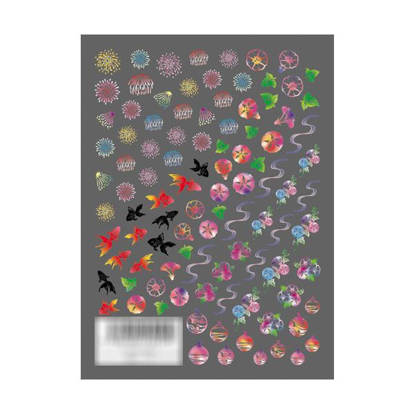 花火やヨーヨーなど、夏の風物詩がデザインされた季節感のあるネイルシールです。 |
